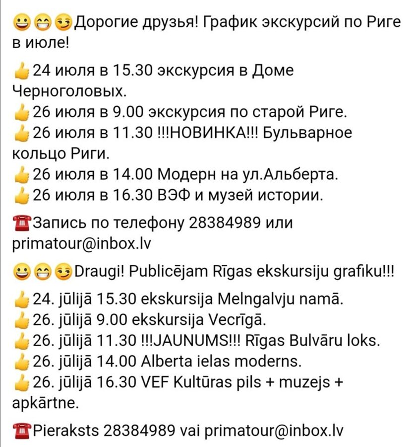 Pieraksts līdz 10.07.2020. Ekskursijas maksa 30 eiro (20 eiro).
